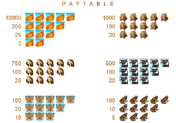 Таблица выплат игрового автомата Пирамиды (Aztec Gold)