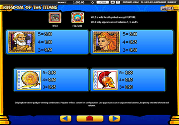 Игровой аппарат Kingdom of the Titans без регистрации не сможет подарить пользователю интересную тематическую бонусную игру и не принесет громадный джек-пот, так как функционал просто не предусмотрен разработчиками ВМС Гейминг.
