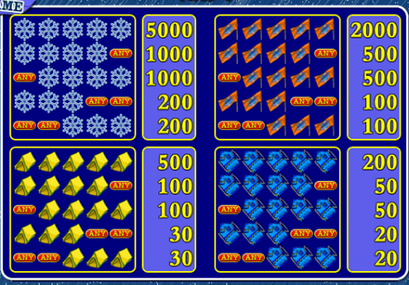 Самый дорогой символ игры это изображение снежинки, видимо потому что снег в горах лежит на самых их вершинах и является основным опасным фактором на пути к ним. Его совпадение численностью в пять раз неизбежно подарит игроку Джек-пот, ставка в этом случае умножается в 5000 раз. Четыре совпадения увеличат ставку в 1000 раз и три в 200 раз.