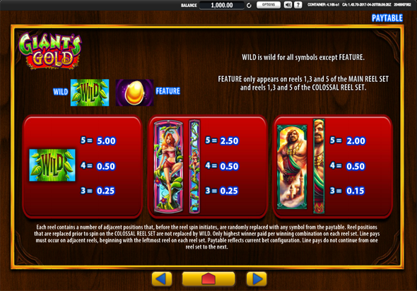 Известный провайдер слотов из США WMS Gaming представляет игрокам новый игровой автомат Giants Gold без вложений. Аппарат посвящен популярной истории наивного мальчика Джека, который обменял корову на бобовые зерна, а на следующий день обнаружил громадные стебли, которые тянутся вверх к загадочному миру.